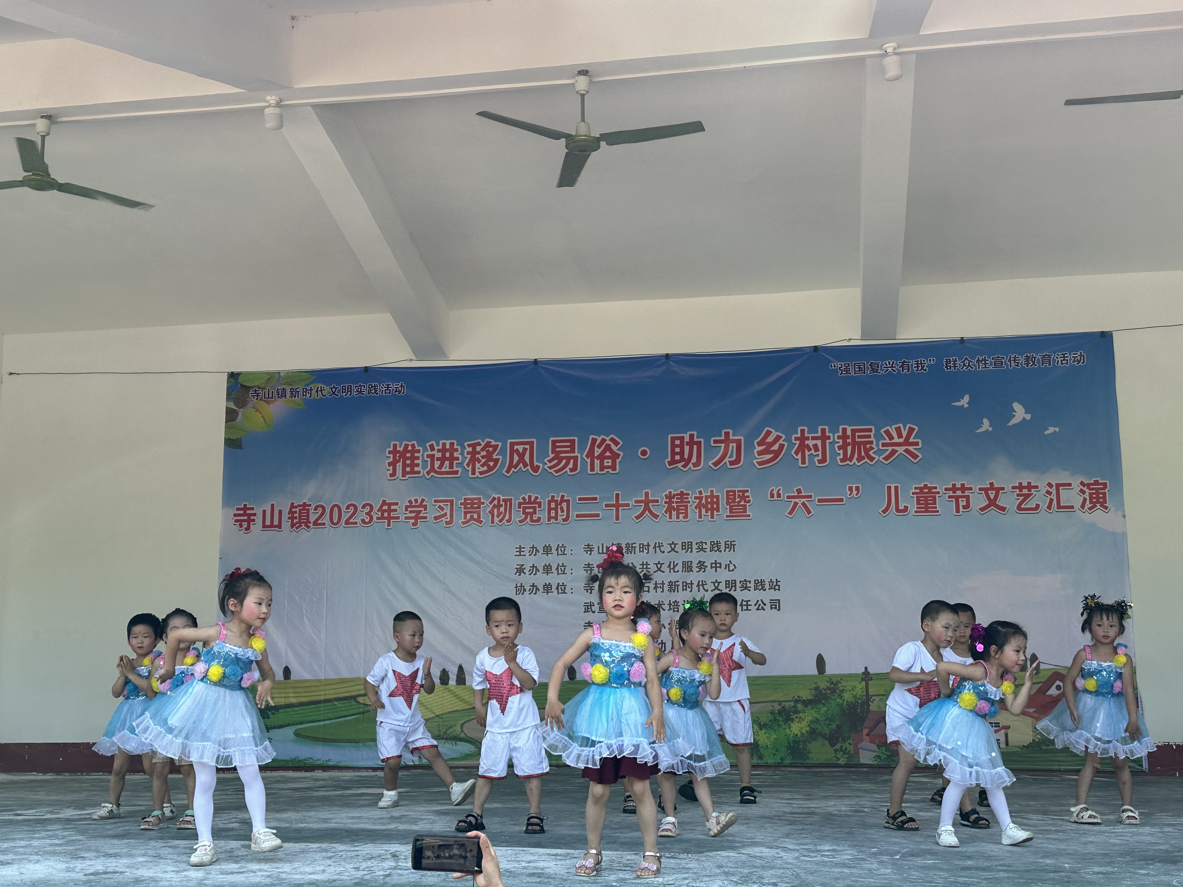 为深入学习贯彻党的二十大精神,加强寺山镇未成年人思想道德建设,弘扬社会主义核心价值观。5月30日,寺山镇在独石村新时代文明实践大舞台开展寺山镇2023年学习贯彻党的二十大精神暨“六一”儿童节文艺汇演。