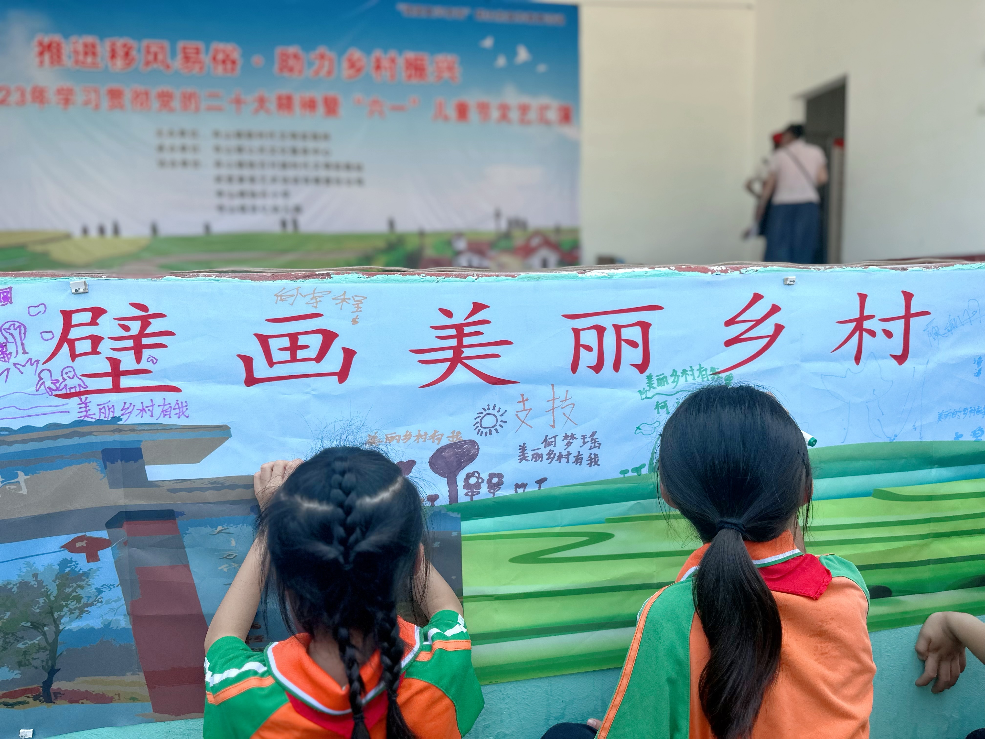 最后,活动现场还举行了“壁画美丽乡村”绘画活动。孩子们手握画笔,在画布上画下自己对党和国家的热爱、对推进乡村振兴的奇思妙想,将美丽乡村融入绘画艺术,谱写着乡村振兴新篇章,在潜移默化和寓教于乐中增进了少年儿童爱党爱国的情怀。