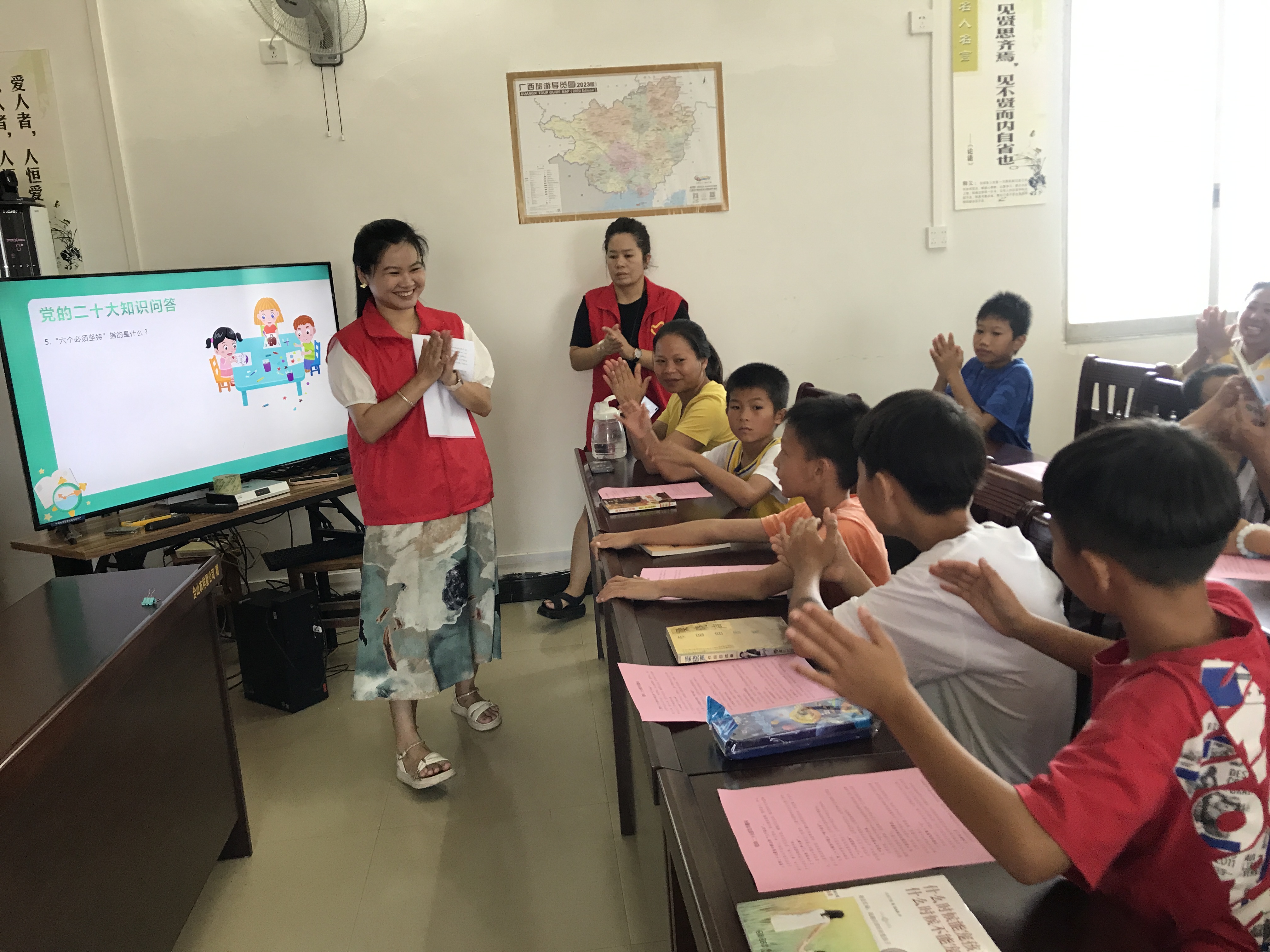 7月7日,岭南镇文化志愿者到里兰村委开展“阅读红色经典 传承红色基因”主题阅读志愿服务活动,以党的二十大精神知识为引,讲述红色故事为基,传承红色基因,培育新时代好少年。