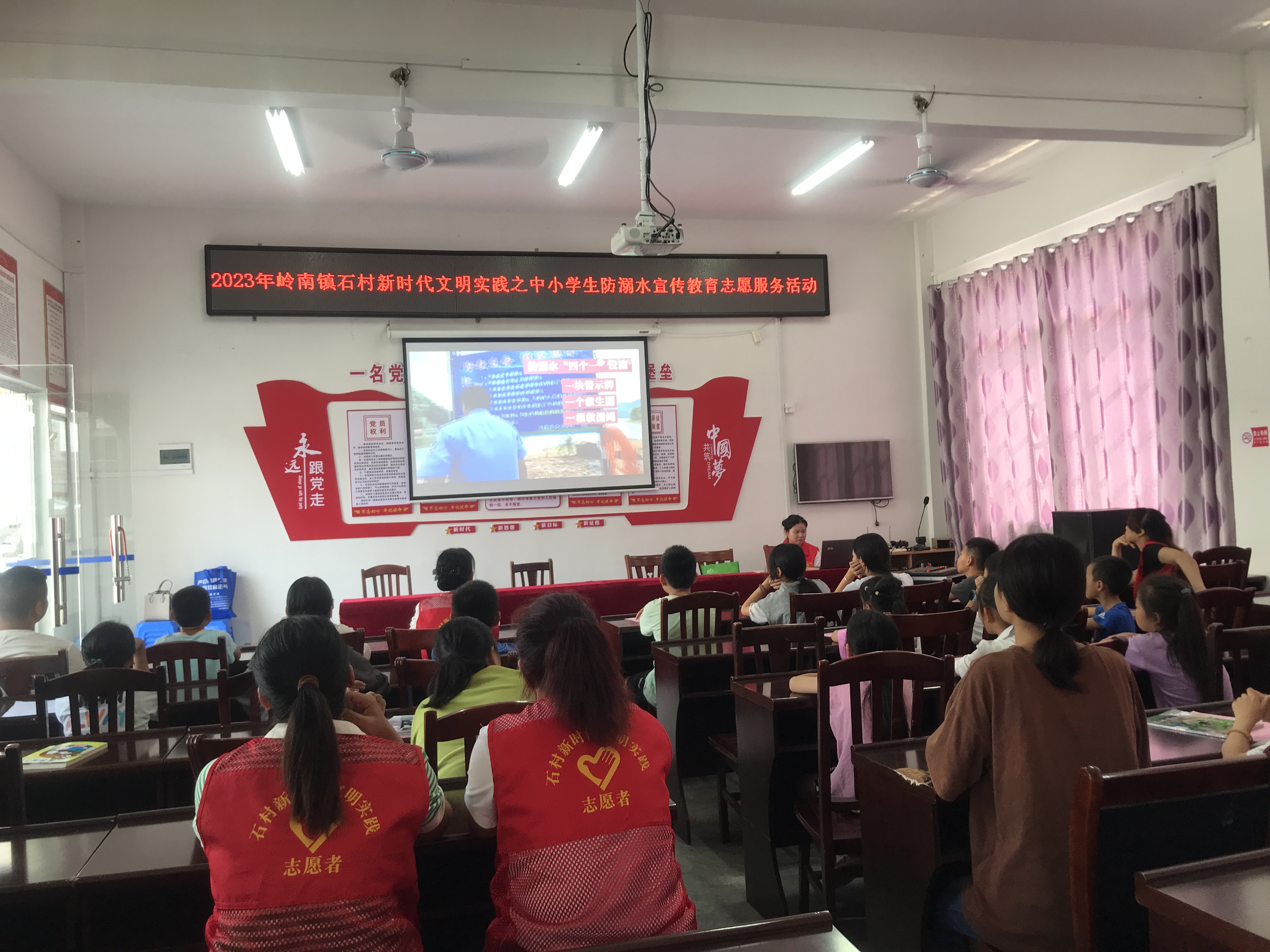 另外,岭南镇公共文化服务中心时常转发各类防溺水安全宣传视频,督促各村、社区网格员、党员等积极转发微信群向社区居民、农村群众宣传防溺水工作。志愿者深入各村、社区组织青少年儿童通过观看防溺水宣传视频、倾听防溺水知识讲解、复习防溺水知识问答等形式,向广大青少年、家长宣传防溺水安全知识,筑牢防溺水“安全网”。
