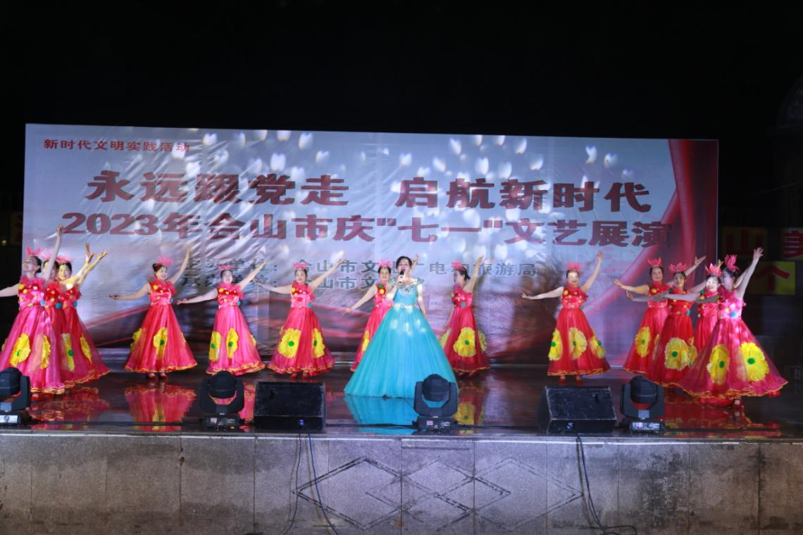 为深入贯彻落实党的二十大精神,庆祝中国共产党成立102周年,丰富群众文化生活,6月30日晚,由合山市文化广电和旅游局主办,文化馆承办的“永远跟党走 启航新时代”庆七一文艺展演活动在新世纪广场举行。