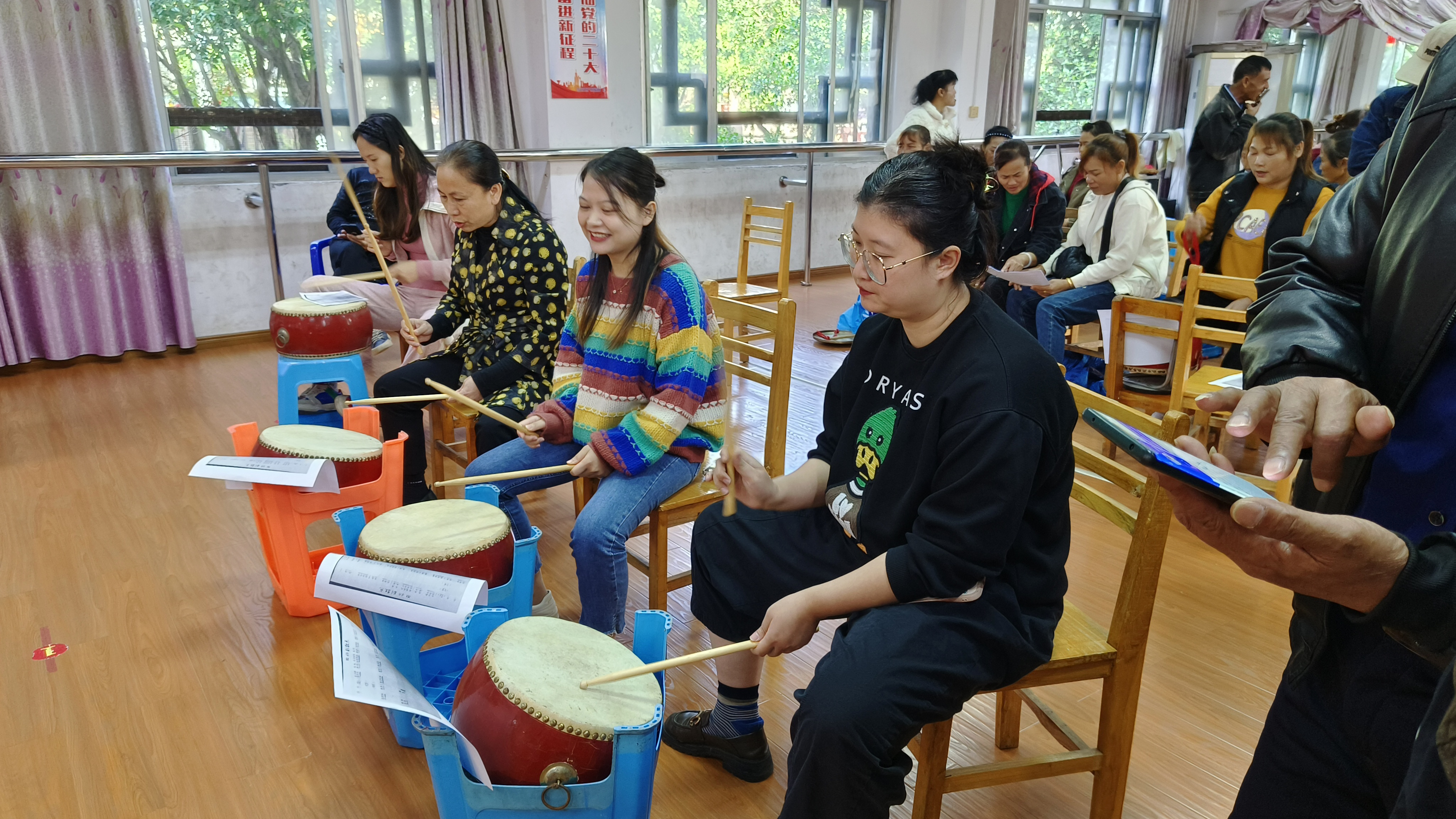 在这次培训中,邱祖威老师带领文化馆的工作人员和业余表演者们深入探讨了打击乐在壮师剧中的运用和创新。通过丰富的理论讲解和实践演练,参与者们掌握了更多关于如何通过打击乐音效的方式丰富壮师剧的表现形式,提升整体演出的艺术水平。