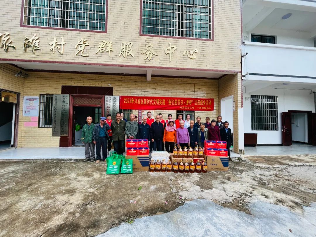 金秋十月,丹桂飘香。在九九重阳节来临之际,为弘扬中华民族尊老、爱老、敬老、助老的传统美德,践行社会主义核心价值观,营造欢乐祥和的节日氛围。10月20日上午,高安乡依滩村后盾单位兴宾区总工会携手爱心企业广西双蚁药业有限公司到依滩村开展2023年兴宾区新时代文明实践“我们的节日·重阳”志愿服务活动,以实际行动表达对老年人的关心关怀,为他们送去节日的祝福与问候。