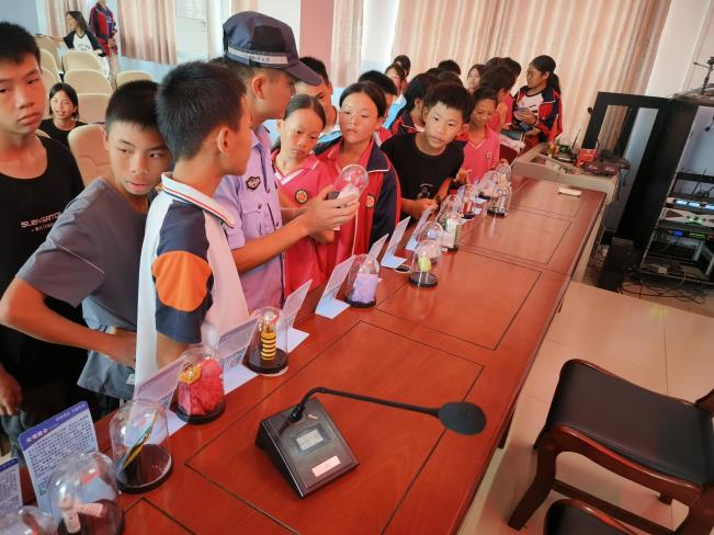 活动中,彭宾镇向广大师生宣讲禁毒知识,耐心地讲解“如何认识毒品”“如何预防毒品”“如何远离毒品”等,提高师生对毒品危害的认识;禁毒专干同派出所民警、禁毒专职工作人员深入班级,开展禁毒知识培训,从“什么是传统毒品”、“什么是合成毒品、合成毒品的种类”、“吸毒对身心的危害”等内容向学生进行禁毒知识的宣传、教育;派出所韦警官向师生展示了吸毒人员精神状态图片、吸毒对人体伤害的案例以及毒品仿真模型,细致的讲解了许多譬如“彩虹烟”、“神仙水”、“奶茶包”之类的极具伪装性、迷惑性的新型毒品,生动形象的展示了毒品的迷惑性和危害性,培训中的问答互动环节更加深了师生对识毒、防毒、拒毒知识的了解。