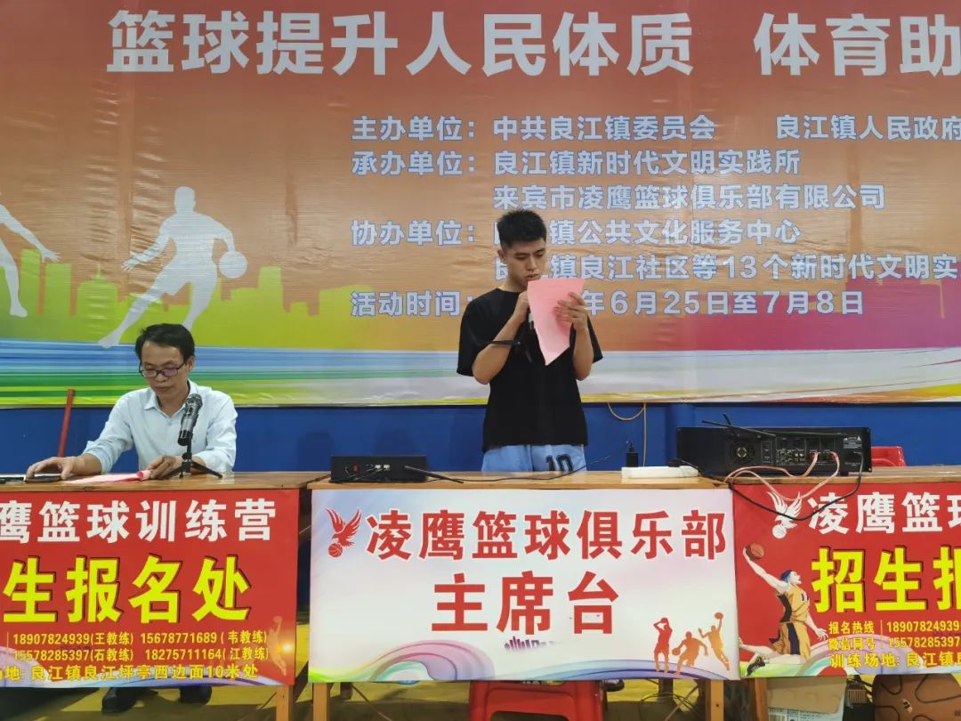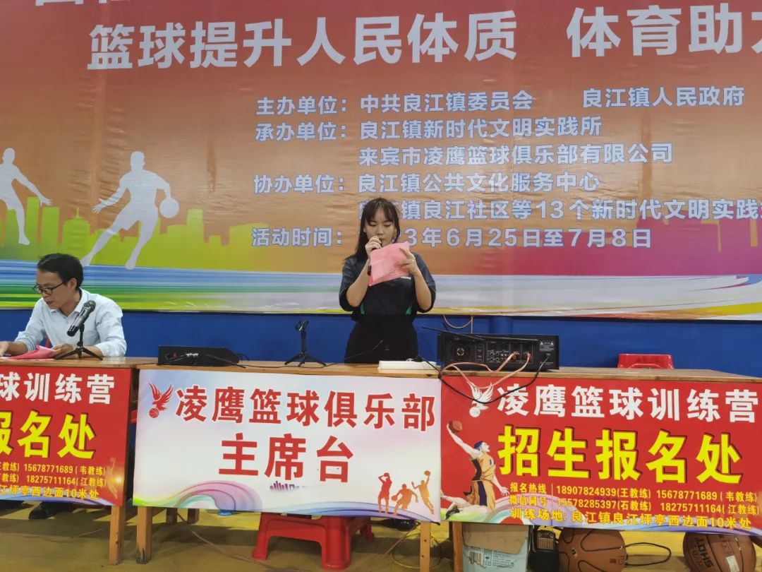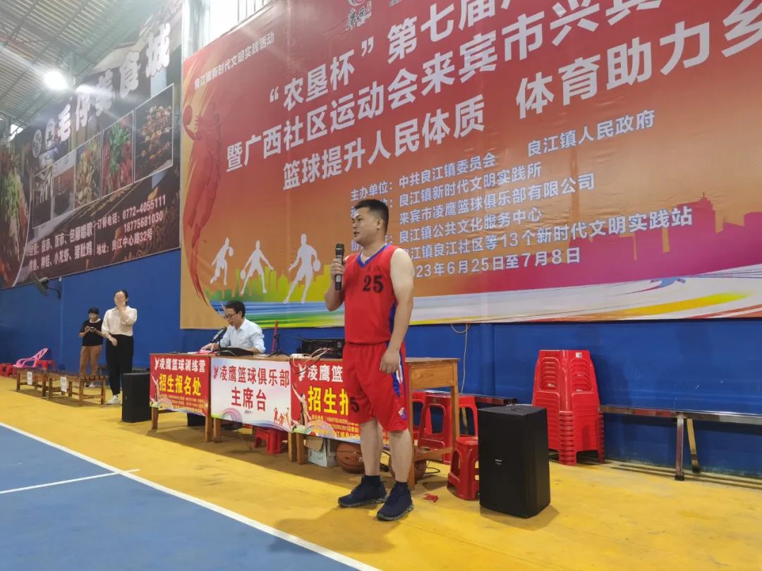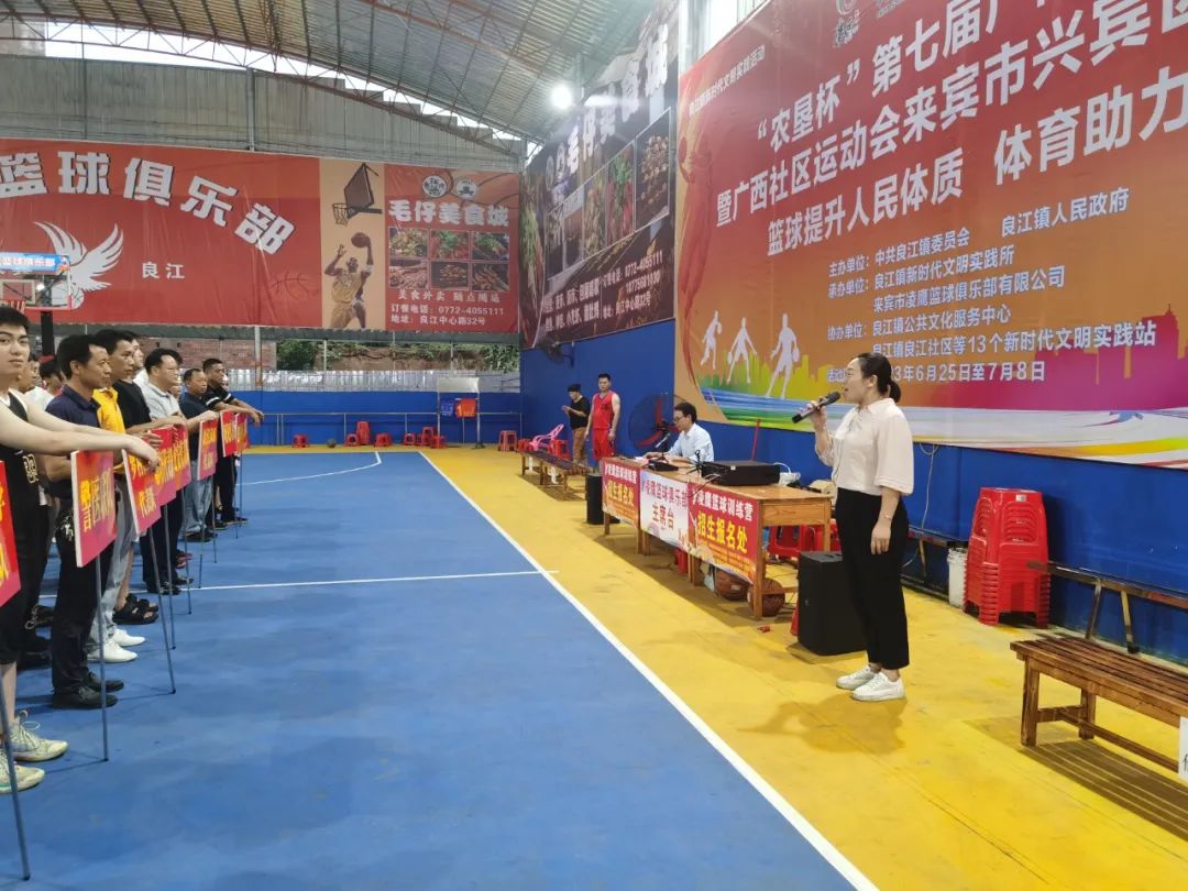 在一片欢呼和呐喊声中,良江镇党委书记王超同志宣布:2023年“农垦杯”第七届广西万村篮球赛暨广西社区运动会来宾市兴宾区良江镇级赛开赛!