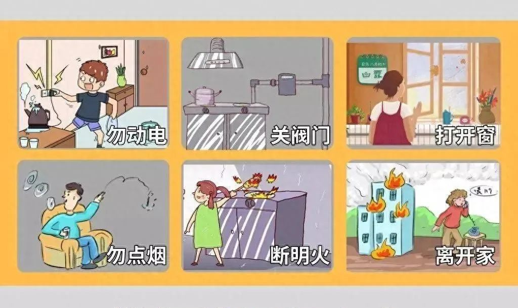 2、杜绝一切可能产生火花的行为,严禁在室内开启任何电器设备,如打电话、开灯、开排气扇、抽油烟机等以及穿脱化纤衣服;最后撤离现场,到室外拨打119火警电话等待救援;