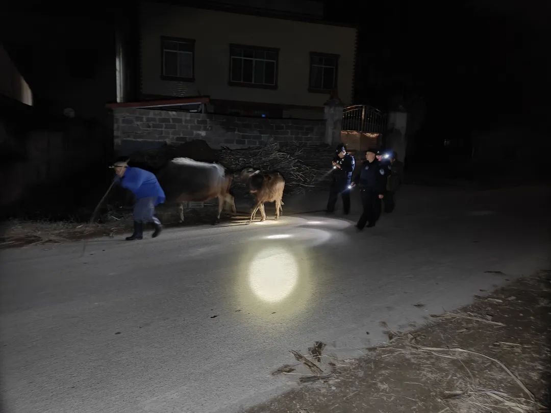 “警察同志,我家的两头水牛跑丢了,可以帮我找一下吗?”1月24日19时许,南泗派出所接到南泗村村民李某报警求助。