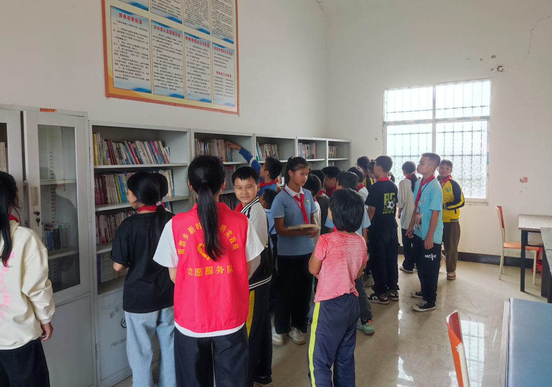 同学们在陈寺村农家书屋挑选书籍