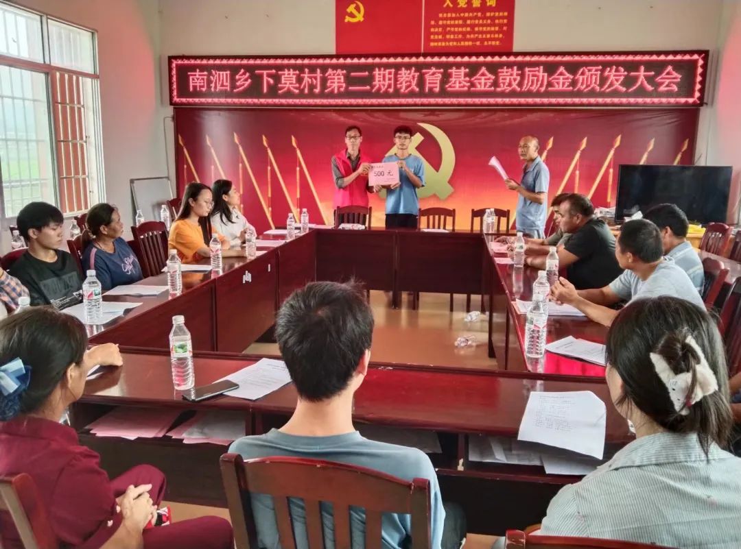 为了鼓励2023年考取本科、研究生等品学兼优的学子,激发他们继续奋发向上,营造崇学尚学之风。近日,南泗乡下莫村委召开下莫村第二期教育基金鼓励金颁发大会,为准大学新生、准研究生发放鼓励金,以表彰今年考上本科或研究生的优秀学子。