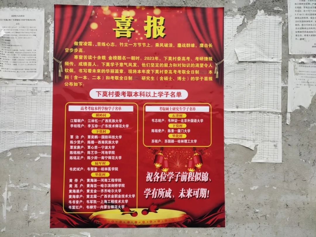 “祝贺大家考上自己心仪的大学,读书是通向成功的最简单的捷径,希望大家努力读书,将来学有所成不忘报答家乡。”会上,乡党委副书记韦威德,乡党委委员、副乡长罗志松,下莫村党总支部书记江奖朝,下莫村驻村第一书记黄奕强,分别向18位考取本科和硕士研究生的学子表示祝贺,并鼓励他们努力学习,争取早日成才以报答家乡的恩情。