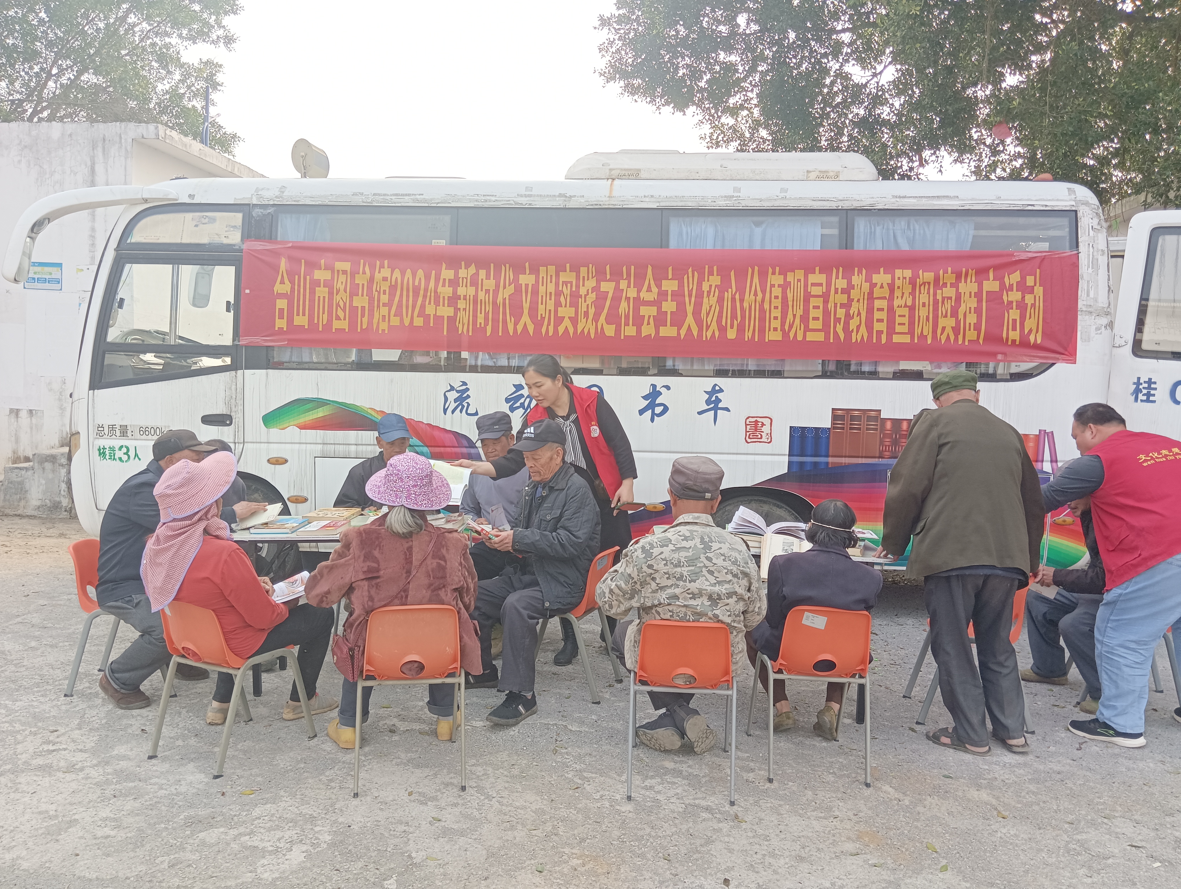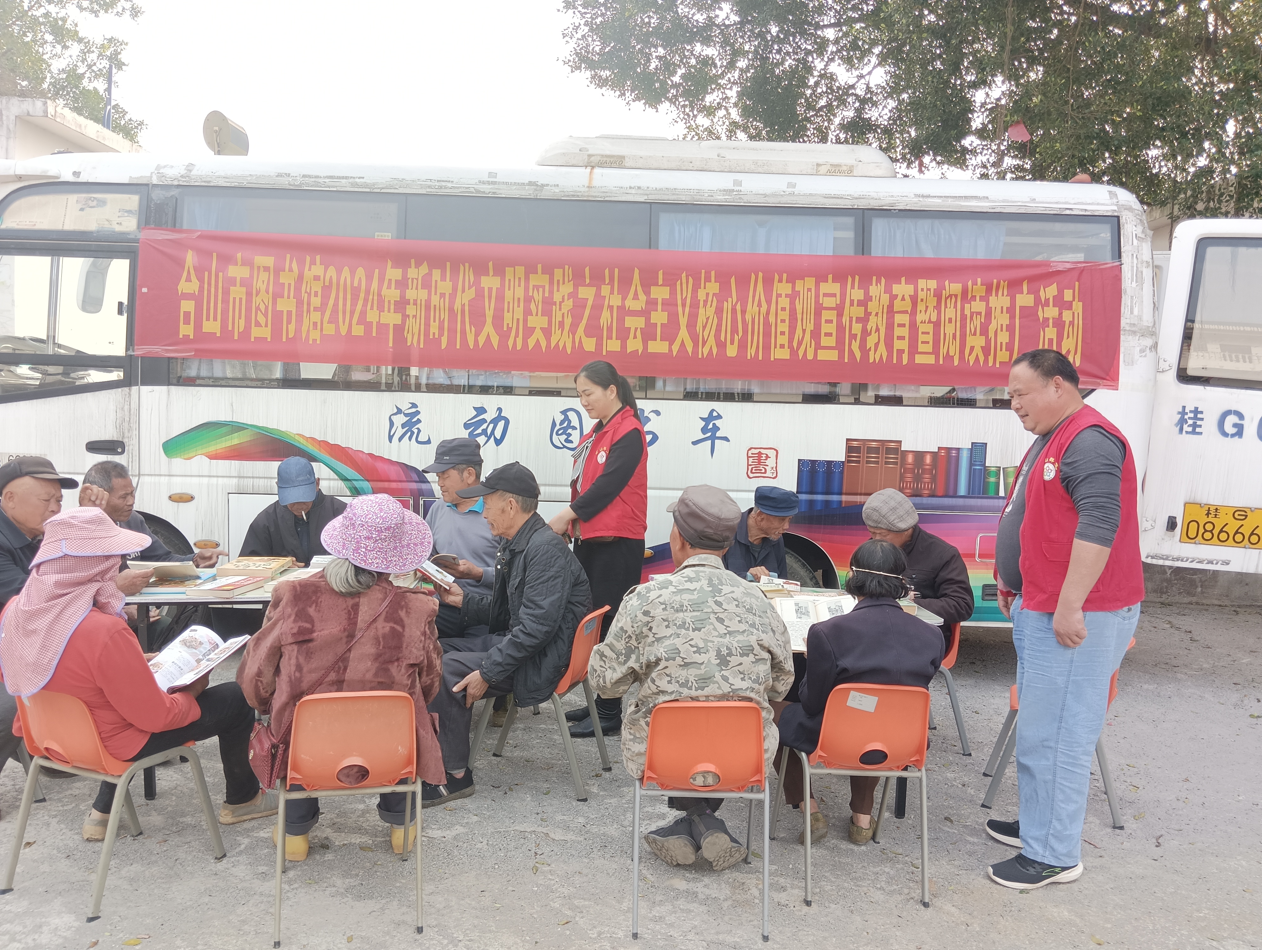 2024年3月7日,合山市图书馆在河里镇怀集村开展了合山市图书馆2024年“合山市图书馆2024年新时代文明实践之社会主义核心价值观暨阅读推广活动”