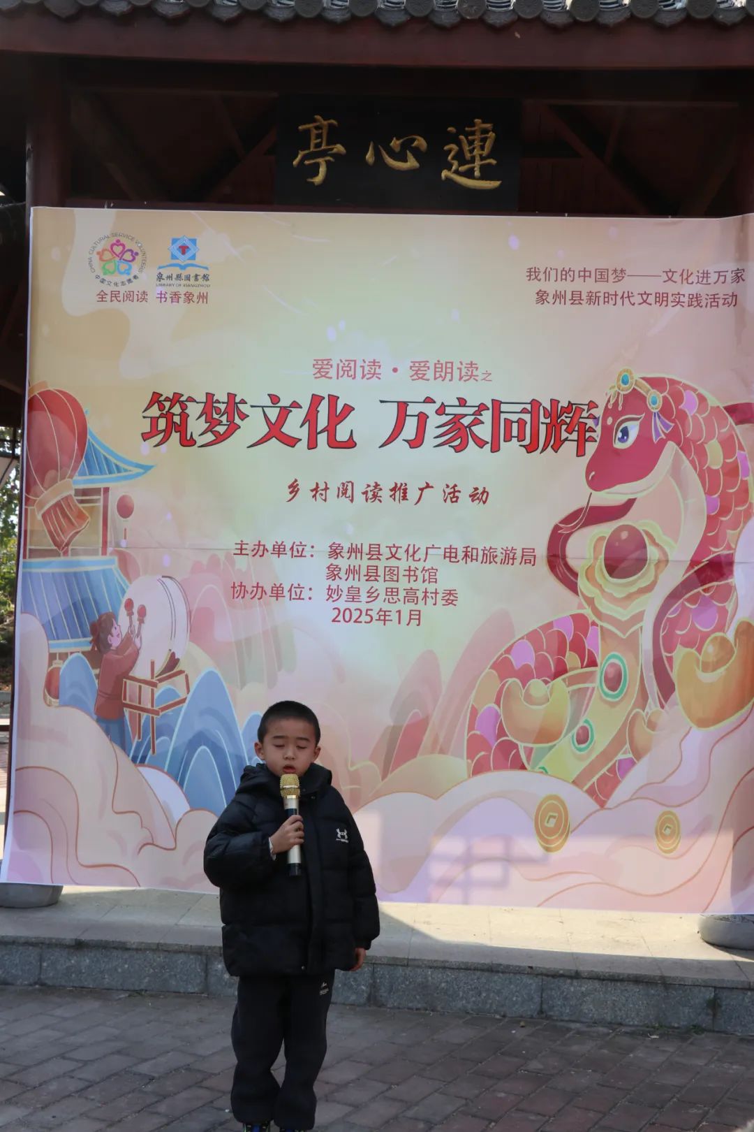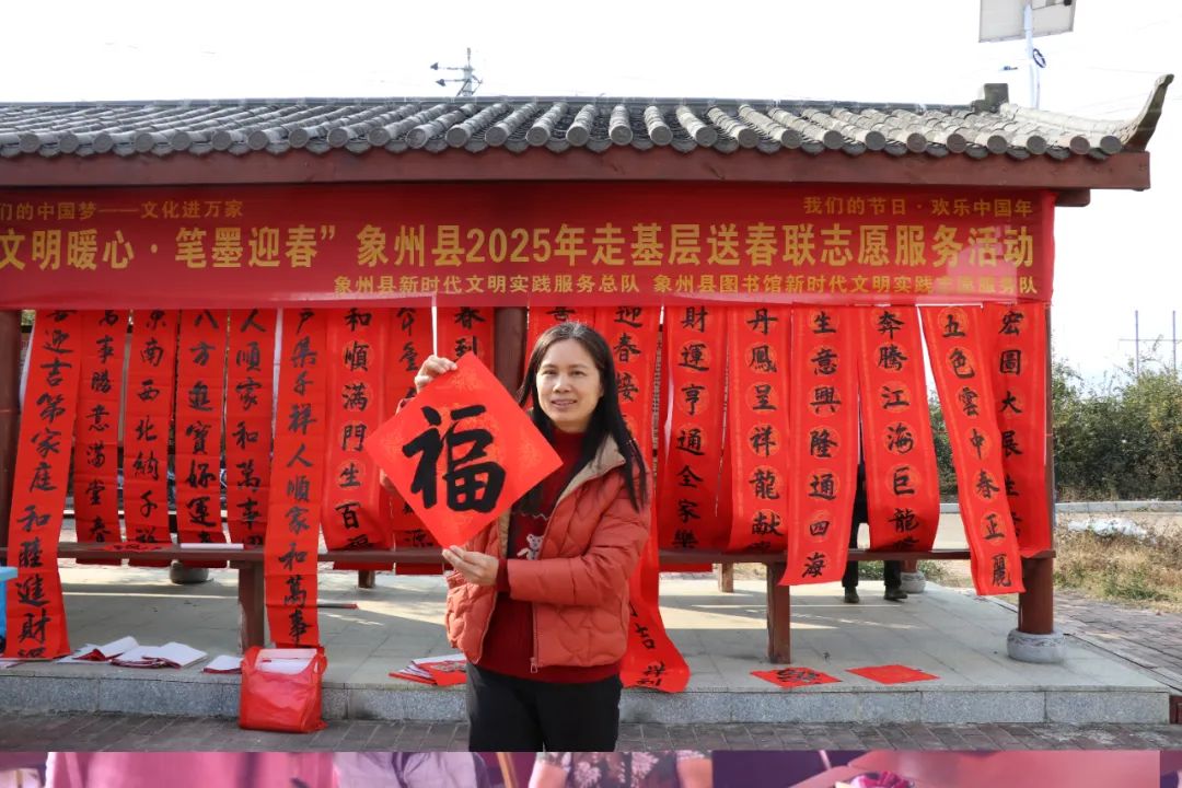 1月20日,象州县文化广电旅游局、象州县图书馆在妙皇思高村委开展“文明暖心·笔墨迎春——我们的节日·欢乐中国年”主题志愿服务活动。内容包括 “爱阅读·爱朗读之筑梦文化 万家同辉”、“文明暖心 笔墨送福”迎新春送春联,以及“我们的节日·欢乐中国年”迎新春游园活动,将浓浓的年味和节日的祝福送到群众身边。 活动现场,县文化志愿者邓东冬老师泼墨挥毫,笔走龙蛇,书写美好愿景。村民驻足围观,精挑细选,拿到心仪的春联喜笑颜开。当天免费送出百余幅春联和“福”字。图书馆举办的现场即兴朗读,参与者们热情洋溢,轻松自在,用朗读抒发新年逐梦的情怀,用声音传递阅读的快乐和力量。此外,还开展了猜谜、抛圈、蒙眼击锣等新春游园活动,吸引众多村民参与,现场气氛溢出浓浓的年味和满满的温暖。 此次象州县图书馆到思高村委开展的活动取得了圆满成功。丰富的活动内容不仅为村民们带来了欢乐和温暖,也进一步弘扬了中华优秀传统文化。在新的一年里,象州县图书馆也将推出更多丰富多彩的活动,为丰富群众文化生活贡献更多力量。 通讯员:廖克放 编辑|廖克放 校验|黄凌云 审核|石云