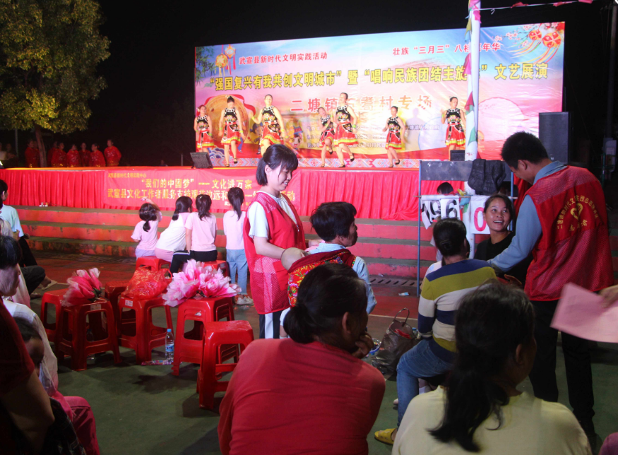 武宣县二塘镇石耉村开展“强国复兴有我共创文明城市”暨“唱响民族团结主旋律”文艺展演